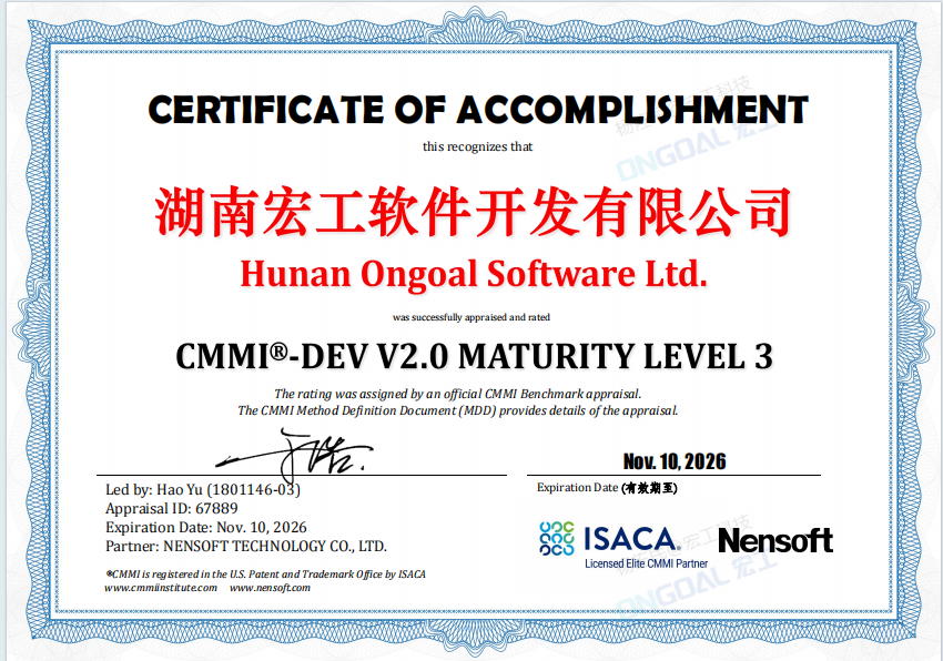 近日,宏工科技子公司湖南宏工軟件成功通過(guò)CMMI三級(jí)認(rèn)證并正式獲得資質(zhì)證書,斬獲全球軟件領(lǐng)域最權(quán)威的認(rèn)證之一,標(biāo)志著宏工在軟件技術(shù)開發(fā)、研發(fā)管理、項(xiàng)目管理等多方面獲得國(guó)際權(quán)威認(rèn)證。