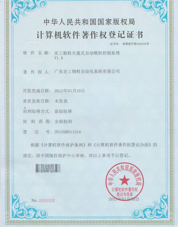 軟件著作權(quán)-宏工粉粒失重式自動喂料控制系統(tǒng)V1.0