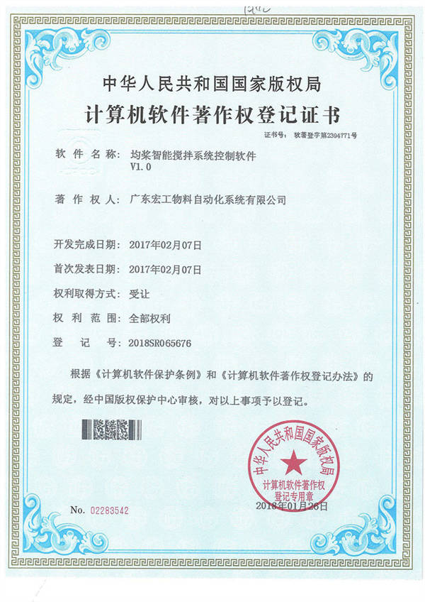 軟件著作權(quán)-均漿智能攪拌系統(tǒng)控制軟件V1.0