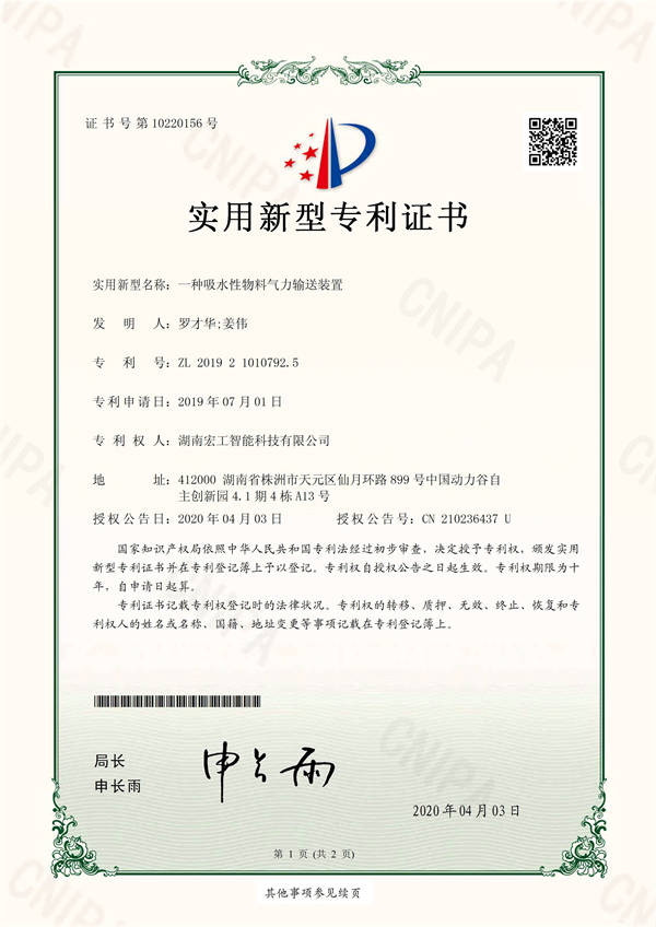 一種吸水性物料氣力輸送裝置2